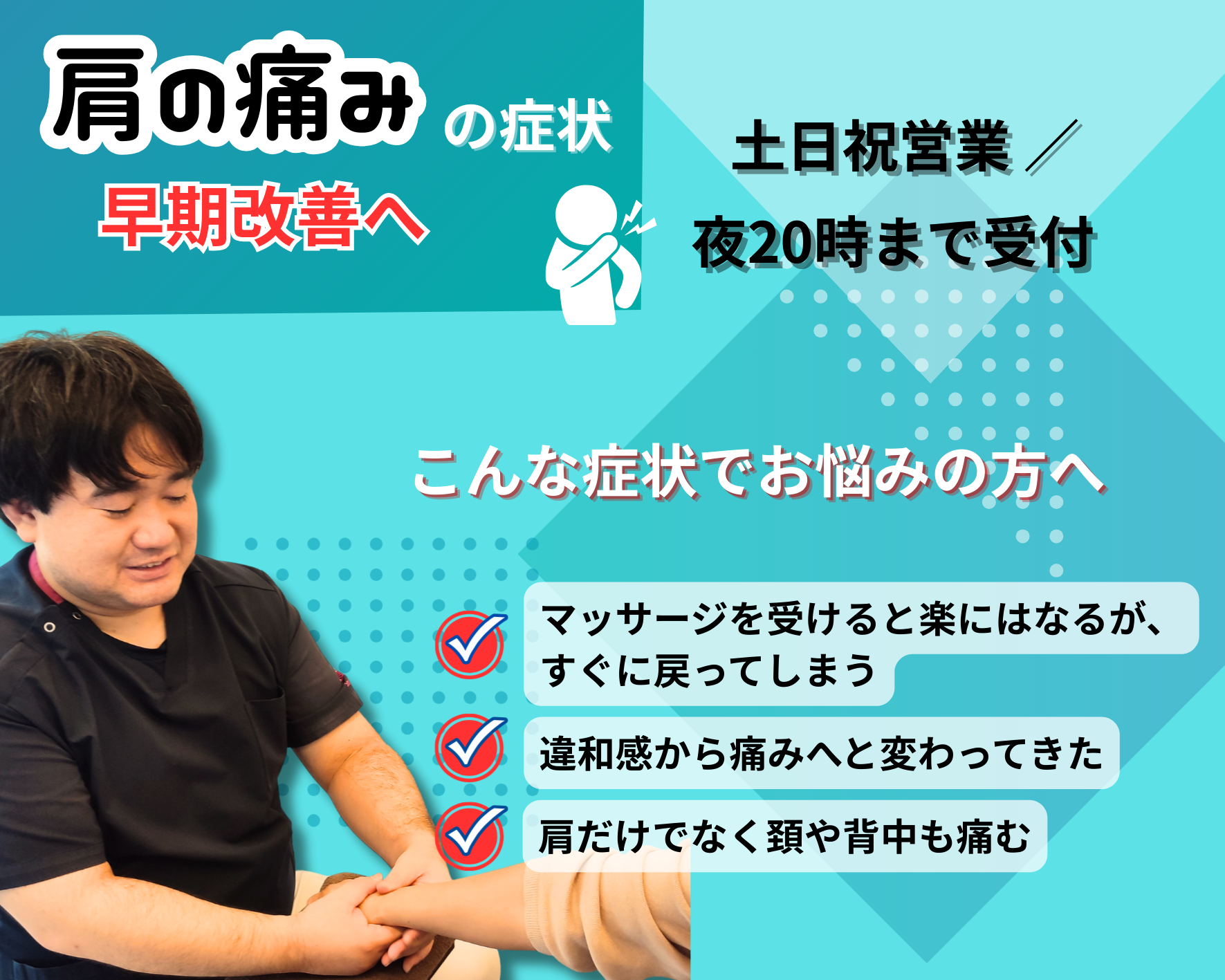 もしあなたが肩の痛みでお悩みでしたら、お一人で悩まずにぜひ一度当院までお気軽にご相談ください。